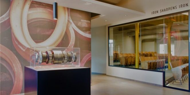 L’ alternanza di pareti cieche e vetrate, suddivide lo spazio di circa 400 mq. Disimpegni e corridoi, sono diventati una sorta di spazio rappresentativo ed espositivo dei prodotti dell’industria stessa. La cura nella scelta di specifici apparecchi illuminotecnici di alta qualità, è mirata alle differenti esigenze di svolgimento delle attività : uffici, sala riunioni, sala corsi ed esposizione.